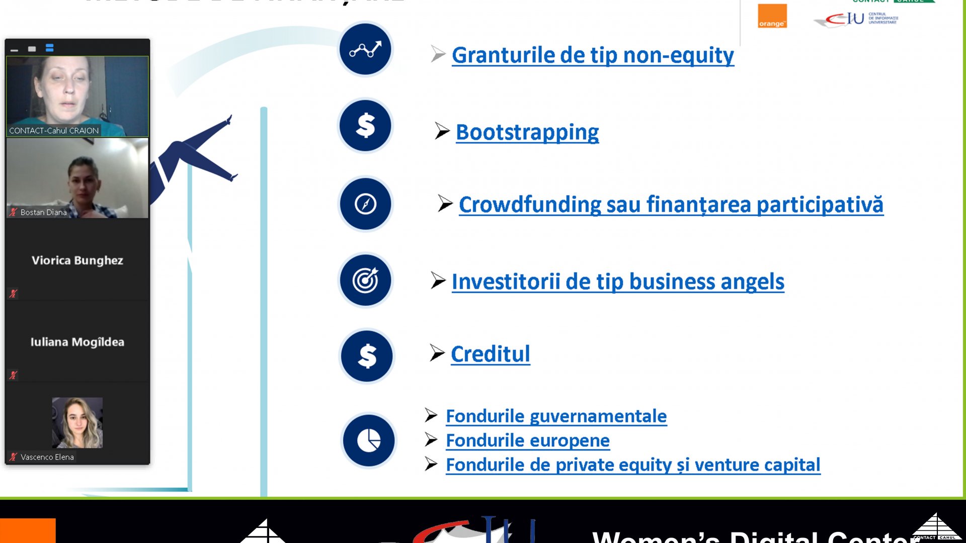 Formatorii care sunt experți în domeniile de Digitalizare și Antreprenoriat, au ajutat cele 18 participante să-și dezvolte cunoștințe și abilități în inițierea, dezvoltarea și finanțarea unei afaceri. De asemenea, au efectuat exerciții practice în utilizarea e-mailurilor, rețelelor sociale, platformelor de ajustare și stocare a documentelor, instrumente de comunicare online, accesarea și distribuirea fișierelor prin Google Drive, etc.