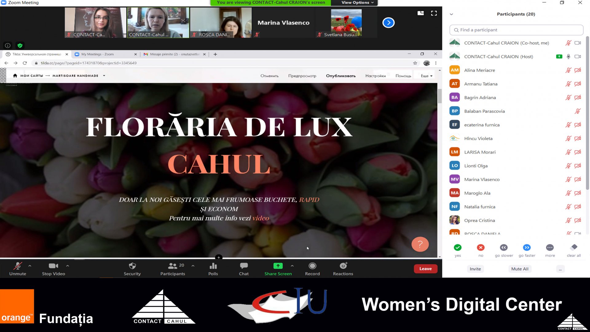 În perioada 22 februarie – 3 martie, 2021 echipa proiectului „Women’s Digital Center”, a realizat o serie de cursuri teoretice și practice de educare Digitală și Antreprenorială pentru cele 18 beneficiare din grupul IV. Au fost utilizate diverse instrumente și exemple reale pentru sporirea abilităților digitale în inițierea și dezvoltarea unei afaceri de succes în Republica Moldova.