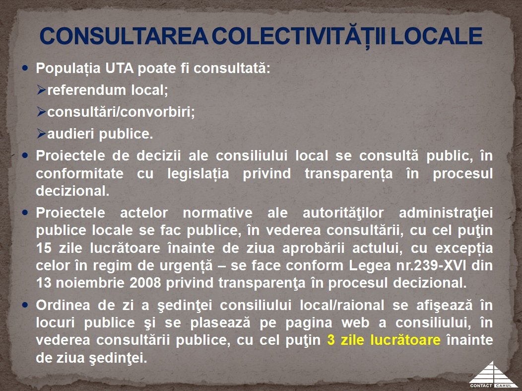 Atelierul este realizat în cadrul proiectului “Consiliul Raional de Participare Cahul – platformă pentru un proces decizional transparent-III”, implementat de AO Centrul ”CONTACT-Cahul” cu suportul Fundației Est-Europene în parteneriat cu Centrul „Parteneriat pentru Dezvoltare”, din resursele acordate de Agenția Elvețiană pentru Dezvoltare și Cooperare (SDC) și Guvernul Suediei.