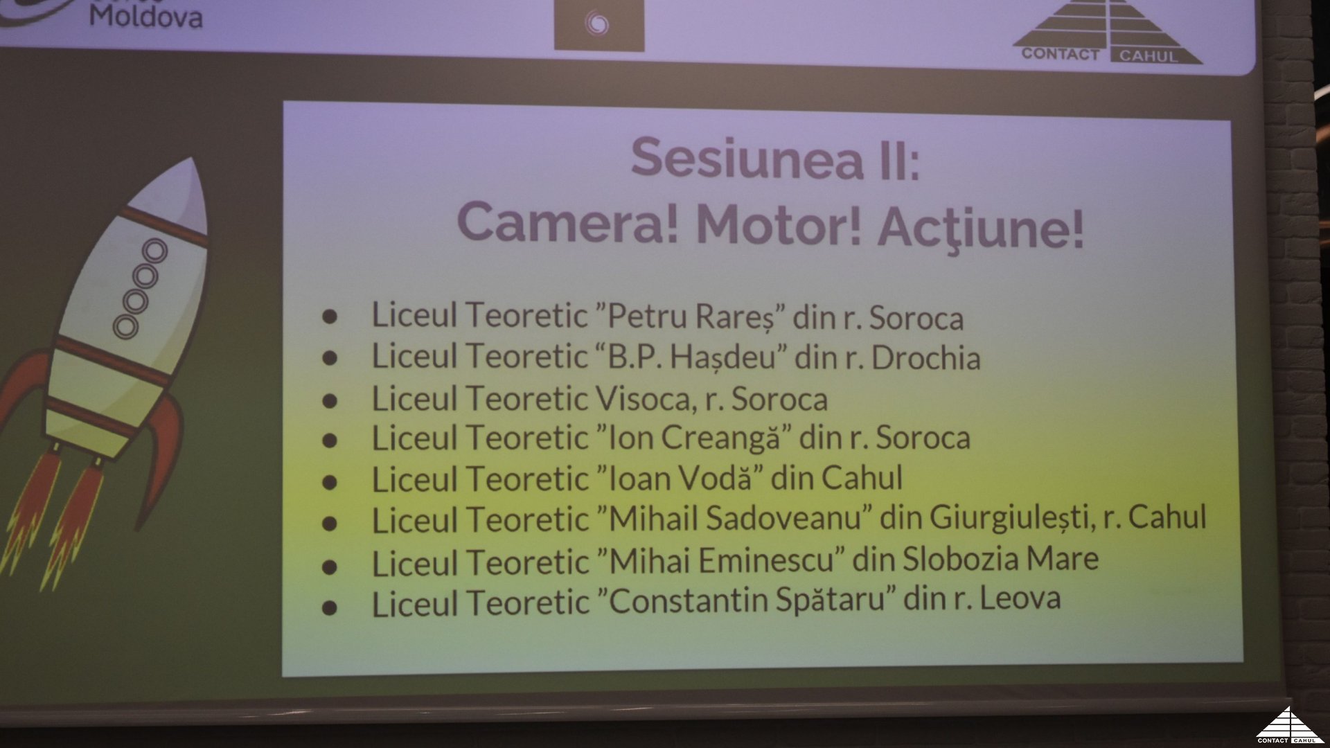 A doua sesiune ”Camera! Motor! Acțiune!” a fost foarte interactivă, căci fiecare Consiliu a prezentat rezultatele obținute în urma miniproiectului implementat printr-un video-u realizat de ei. Astfel, au fost ecranizate 8 video-uri. În urma fiecărei prezentări se organiza o rundă de întrebări-răspunsuri.