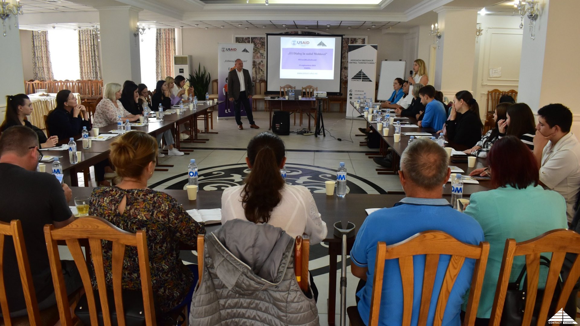Evenimentul de prezentare a rezultatelor finale, a reunit aproximativ 40 de participanți: reprezentanți ai sectorului asociativ, autorități publice locale, mediul academic, mass-media și participanții Academiei Europene din raioanele Cahul, Cantemir și Leova.